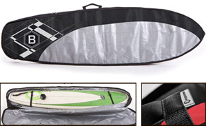 Einfache Boardbags bestehen zumeist aus zwei gepolsterten Stoffhälften, die zusammengenäht werden und wo teilweise ein Reißverschluss eingenäht wird. Hier ist in den Bereichen des Reißverschluss keine Polsterung vorhanden und so kann es zu Beschädigungen an den Rails kommen. Hochwertige Boardbags haben eine gepolsterte Sitewall, die sich auch je nach Einsatzart in der Höhe verstellen lässt.